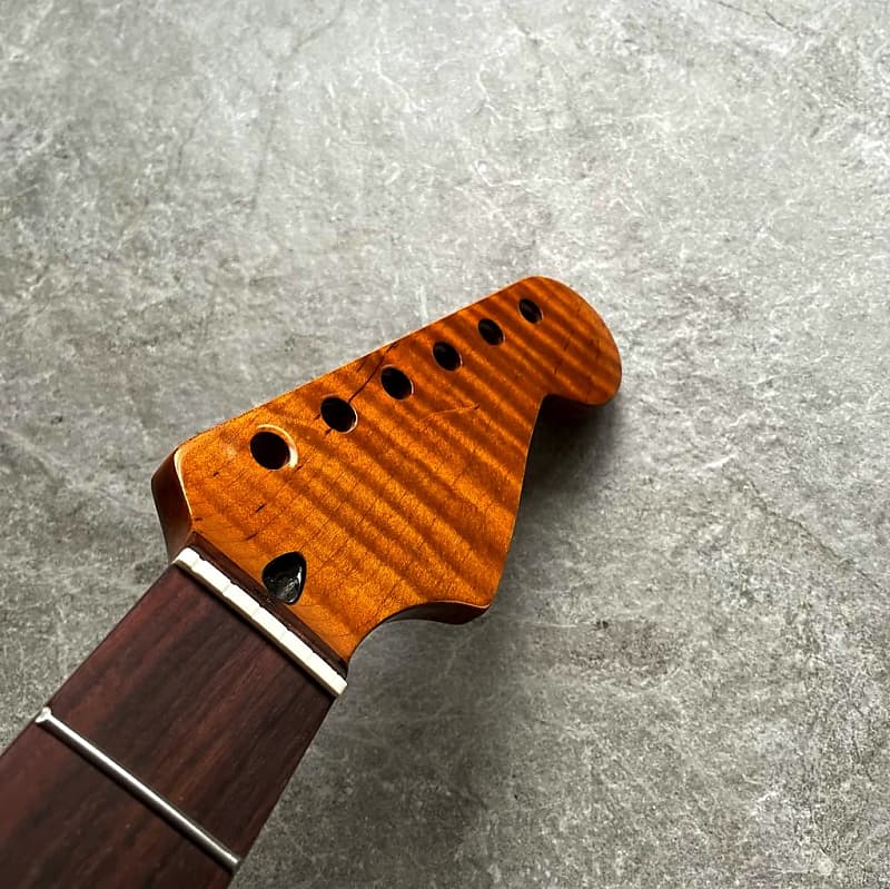 Strat Lion Flame Rosewood Guitar Neck – 22-Fret, Roasted Finish
